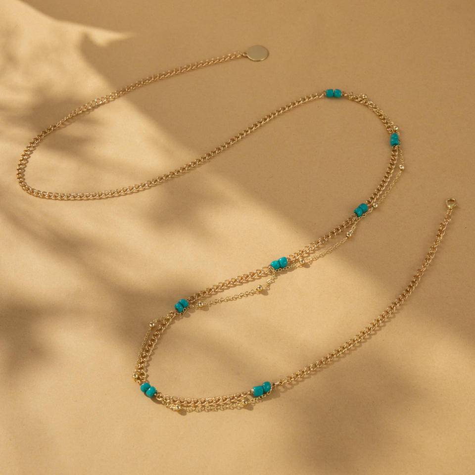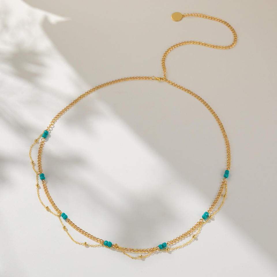 Cadena de cuerpo de capas sexy, cadena de cintura de vientre impermeable de cobre, cadena de cuentas de Bikini para mujer, una pieza en bolsa de OPP individual, embalaje envuelto en burbujas en caja