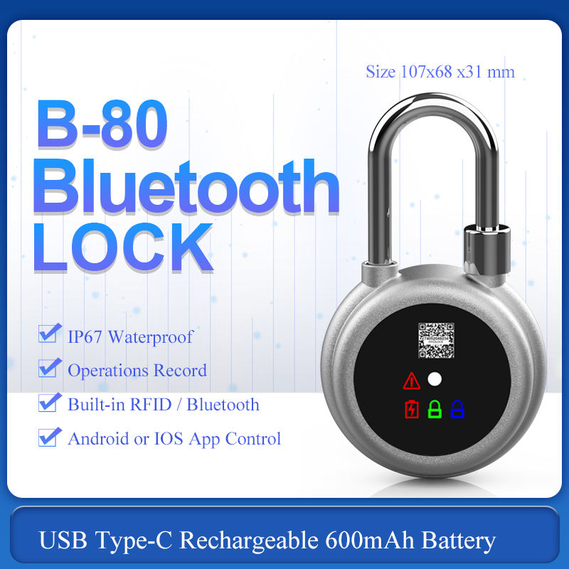 Candado Inteligente B80 con BLE 5.0, Desbloqueo RFID, Almacenamiento en la Nube, Resistente al Agua IP67, Compatible con Puertas de Madera/Vidrio, Aleación de Aluminio, iCloud