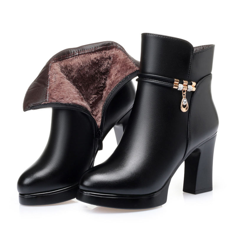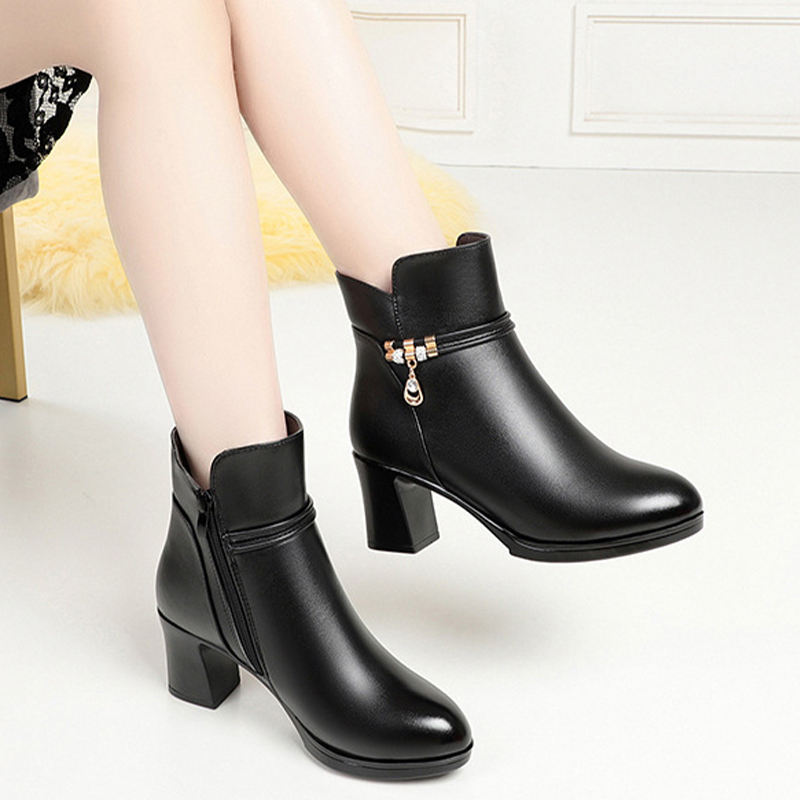 Botas de Mujer BABALA, Elegantes y Versátiles para Uso Diario, Color Negro Sólido, con Cremallera, Tela de Algodón, Tacón Grueso