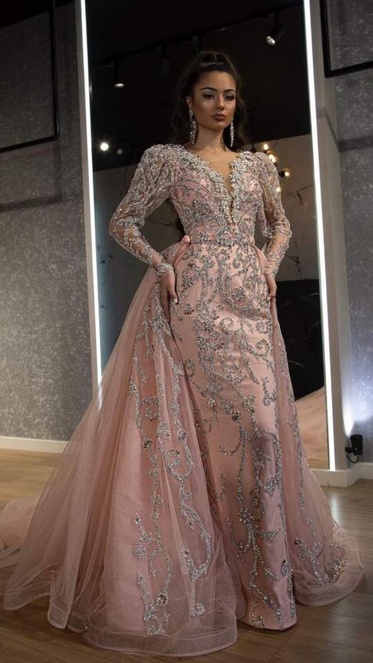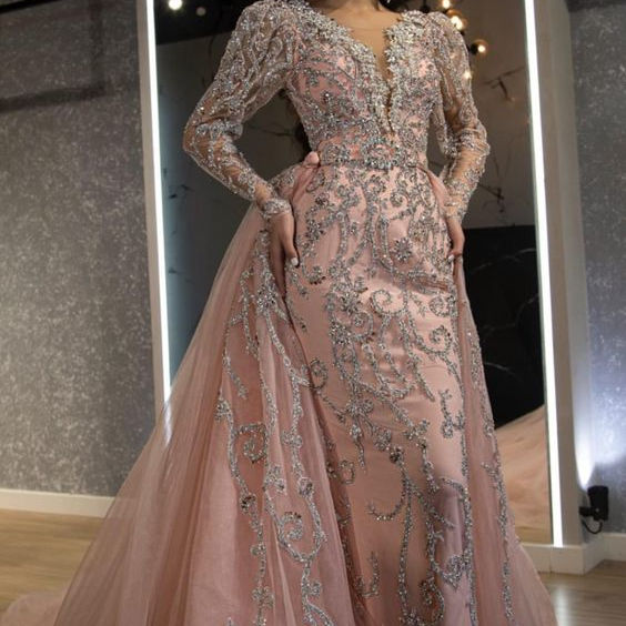 Vestido de noche rosa con bordado colorido de DABKA, cuentas de cristal, trabajo de piedra de vidrio para fiesta, 2022