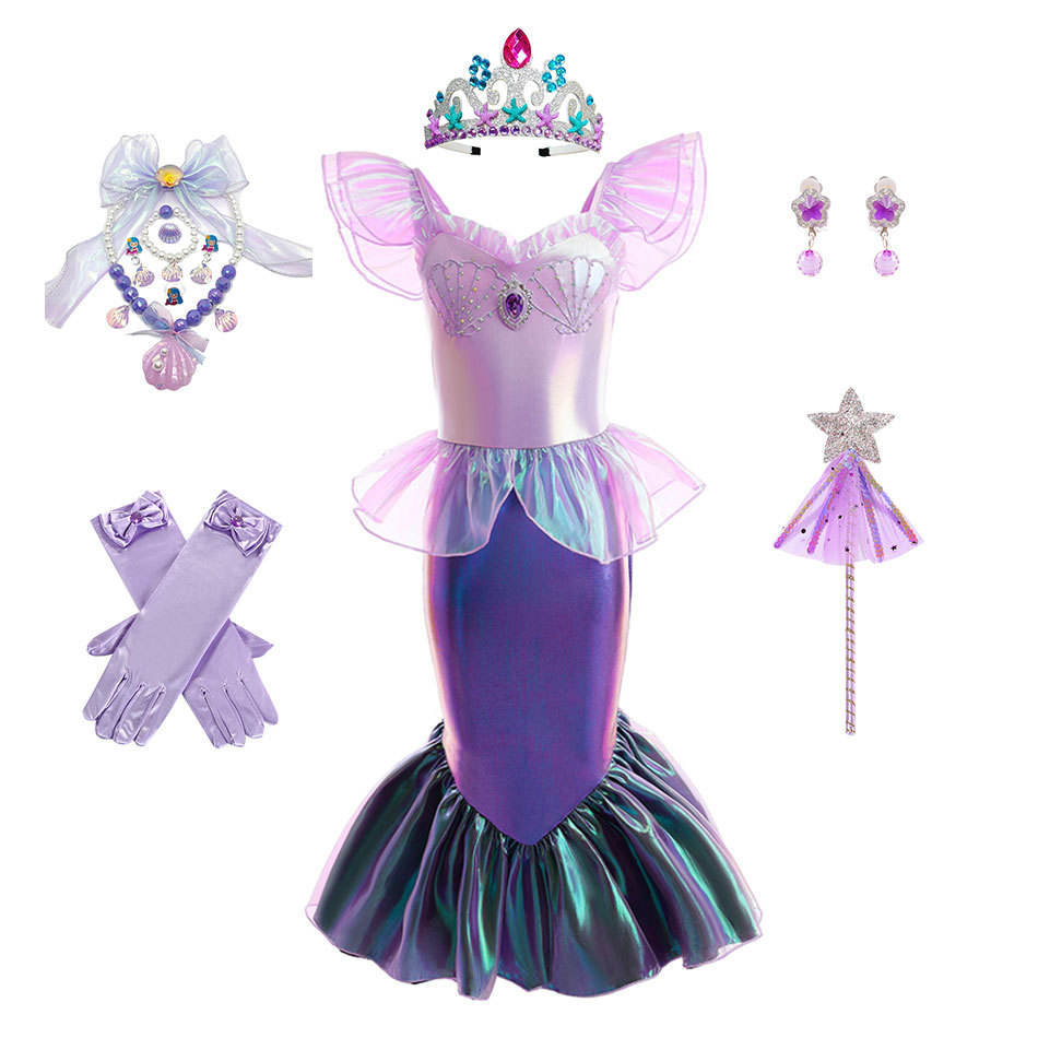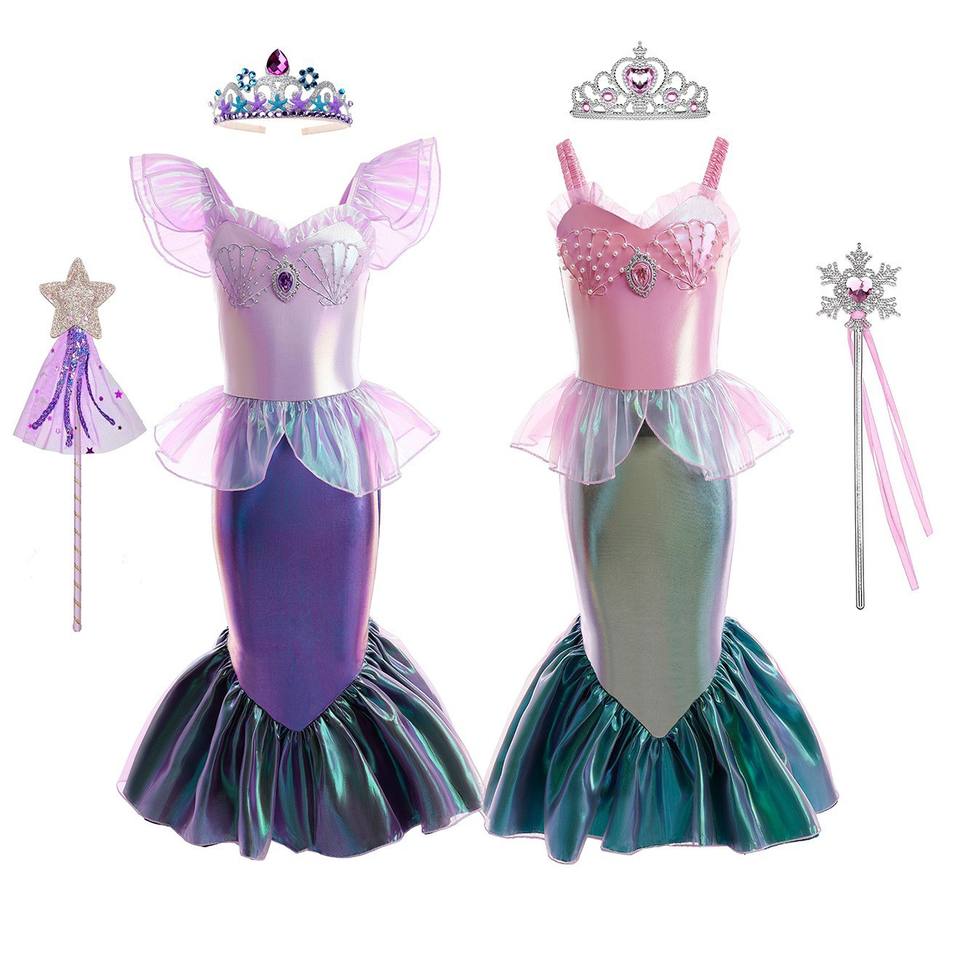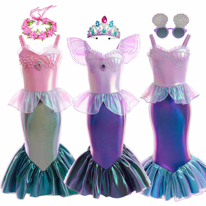 BAIGE nuevo vestido de princesa de cola de pez sinfónico de sirena para niñas estilo europeo americano inspirado en Ariel dibujos animados TV película disfraces