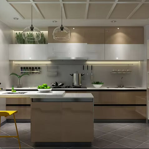 BAINENG - Juego de Muebles de Cocina Modernos con Acabado Brillante, Diseño Gratuito por 48 Horas, Muebles de Cocina Completos de Acero Inoxidable