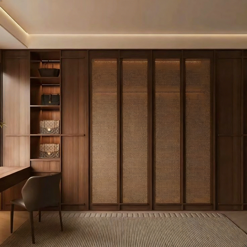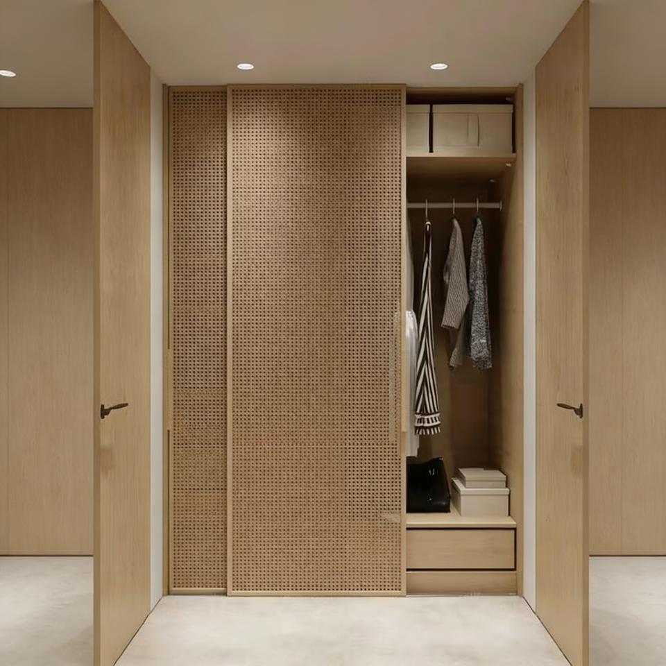 Armario de Dormitorio de Madera con Puerta de Ratán Personalizado BALOM, Gran Capacidad de Almacenamiento, Mueble de Dormitorio Ecológico y Transpirable