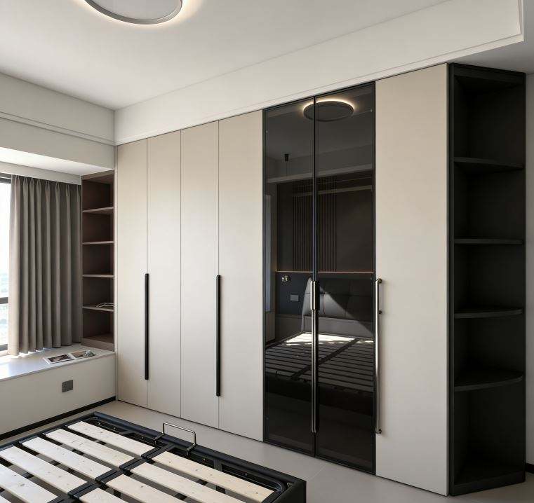 Armario Vestidor Personalizado BALOM con Espejo Superior Integrado y Cajones para Guardar Joyas, Sistema de Guardarropa para Dormitorio