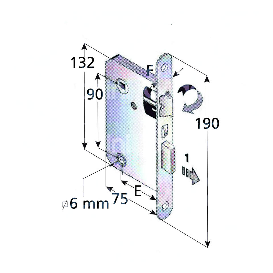 CERRADURA DE BAÑO Borde redondo Int. 90 Pestillo reversible 1 tiro Mango cuadrado 6