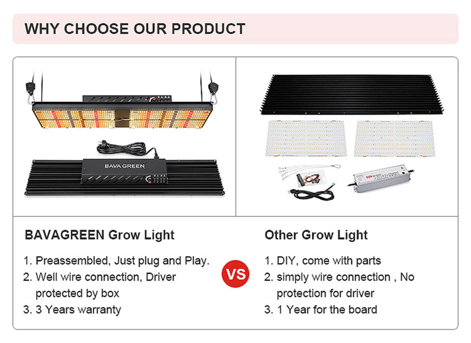 Cantidad de LED:1060 PCs lm301h + 48 PCs rojo + 8 PCs rojo lejano + 24 PCs ultravioleta