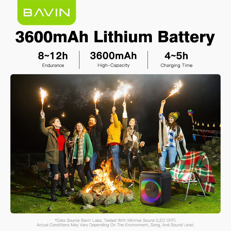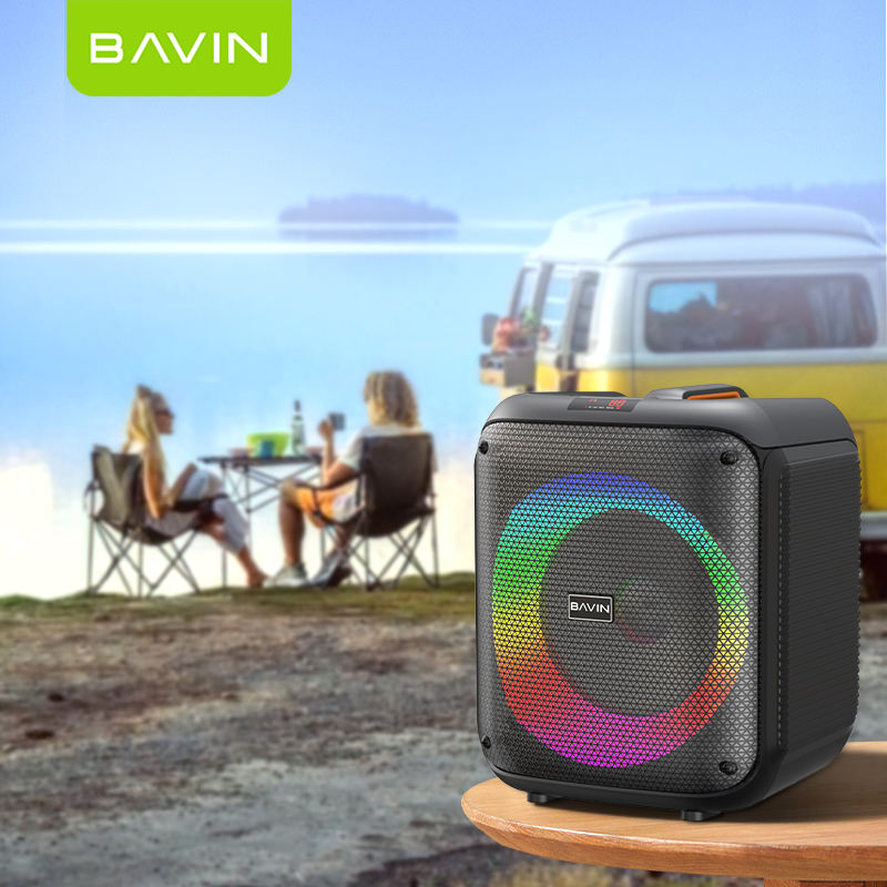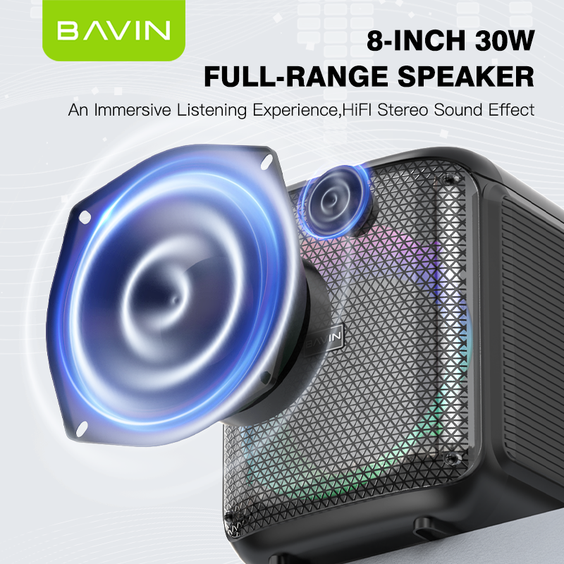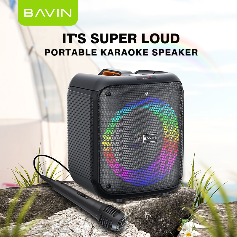 BAVIN Altavoz Karaoke para Exteriores con Luces RGB BM11 Inalámbrico Bt5.1 de 8 Pulgadas y 30w de Rango Completo con Micrófono