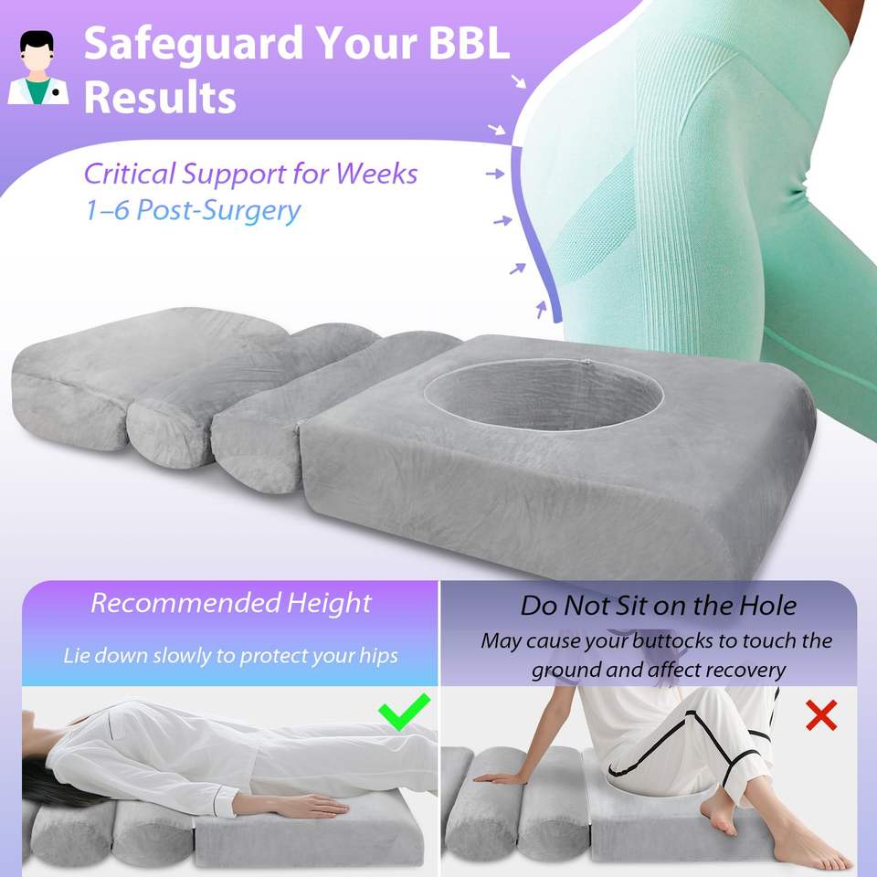 Cama de Recuperación para Cirugía BBL con Agujero, Almohada Ergonómica para Levantamiento de Glúteos Brasileño, Soporte para Dormir Postoperatorio de Espuma de Alta Densidad