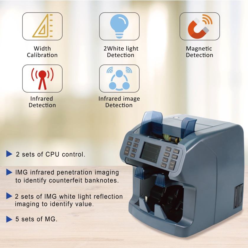 UV (ultravioleta), IR (infrarrojo), 2CIS (Detección de imagen en color), MG (magnético)Método de detección