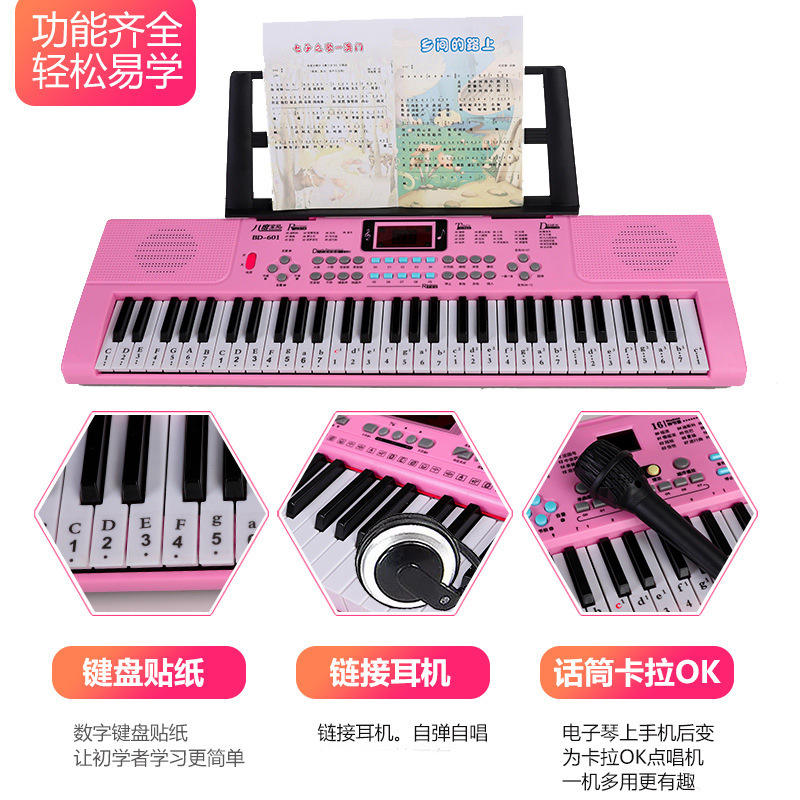 Teclado electrónico BD-601 de 61 teclas para niños, juguete educativo, instrumento musical