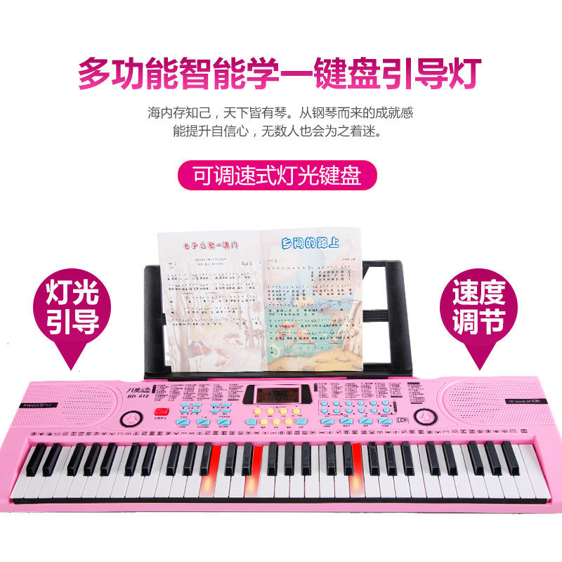 Teclado electrónico BD-612 de 61 teclas, juguete musical para niños con soporte para partituras y altavoces incorporados