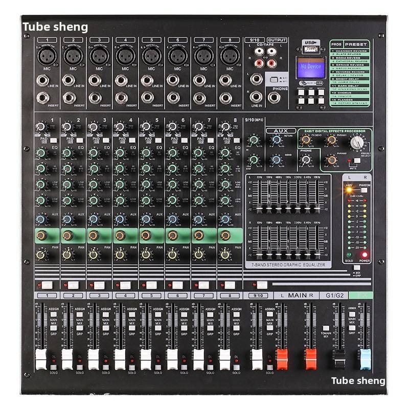 BE-10 Procesador de audio 16 DSP Nightclub Recording Broadcast Studio Singing Mixer con ecualizador dual de 7 bandas y mezclador de 10 canales