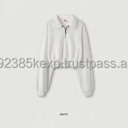 BE385HZ moda Turn Down Collar media cremallera Vintage 385GSM Crop Top Mujer en blanco de gran tamaño personalizado recortado Zip Up Premium HOODIE