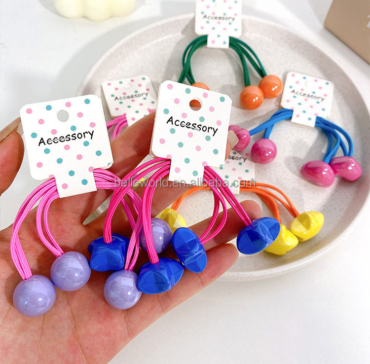 Palabra clave:Buena calidad de las bandas de lazo del pelo del niño de la tarjeta de encargo con dos bolas
