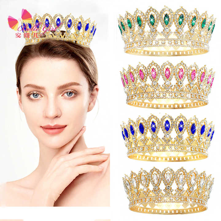 Fábrica de BELLEWORLD, superventas, coronas y tiaras de desfile redondas completas, coronas y tiaras de princesa rubia, novia real, coronas de desfile grandes