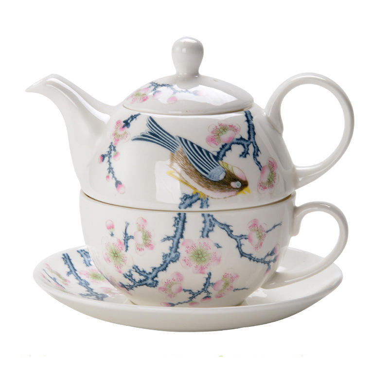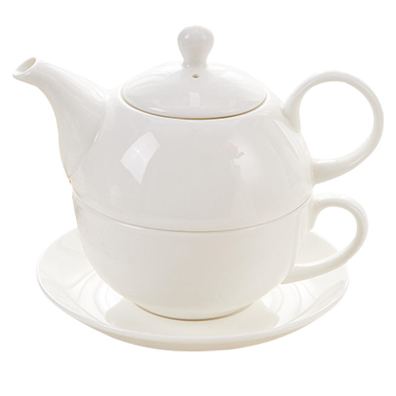 Té de cerámica personalizado BENELUCK para un juego Tetera de porcelana blanca con tapa y taza Platillo de impresión personalizado Olla apilable de un solo uso