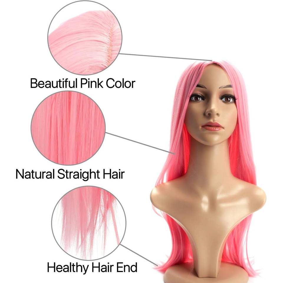 BERRYLION Peluca Larga y Lisa de 28 Pulgadas para Mujeres Negras, Peluca Sintética en Color Rosa