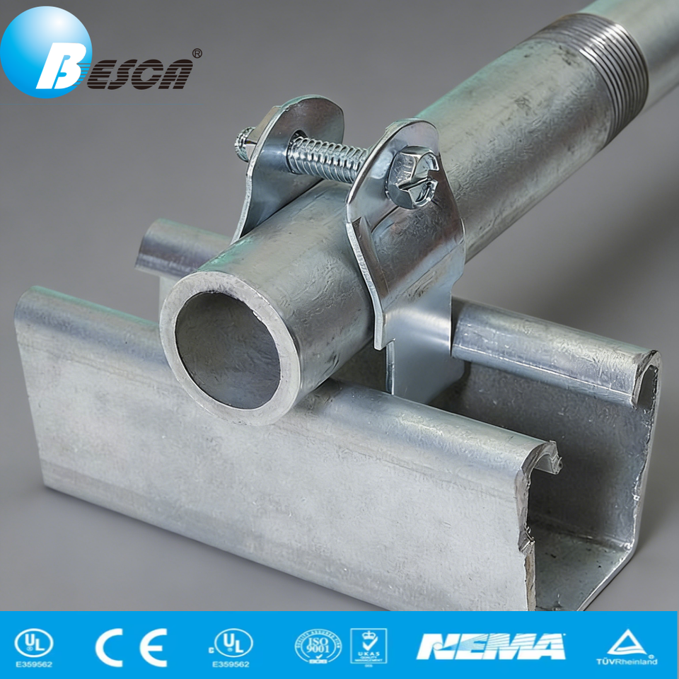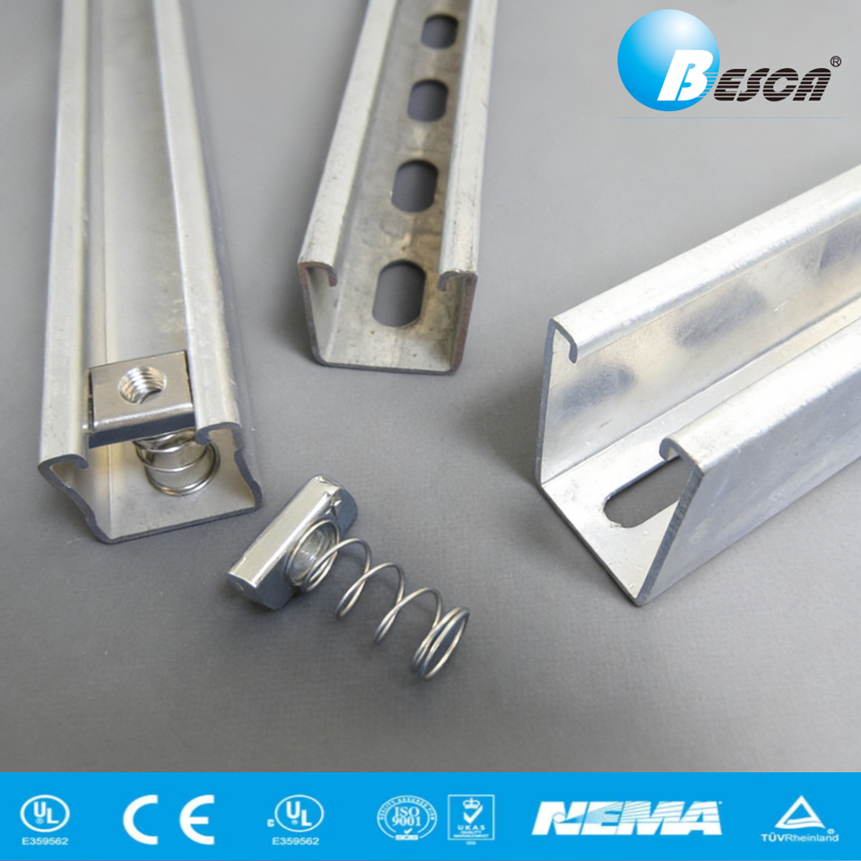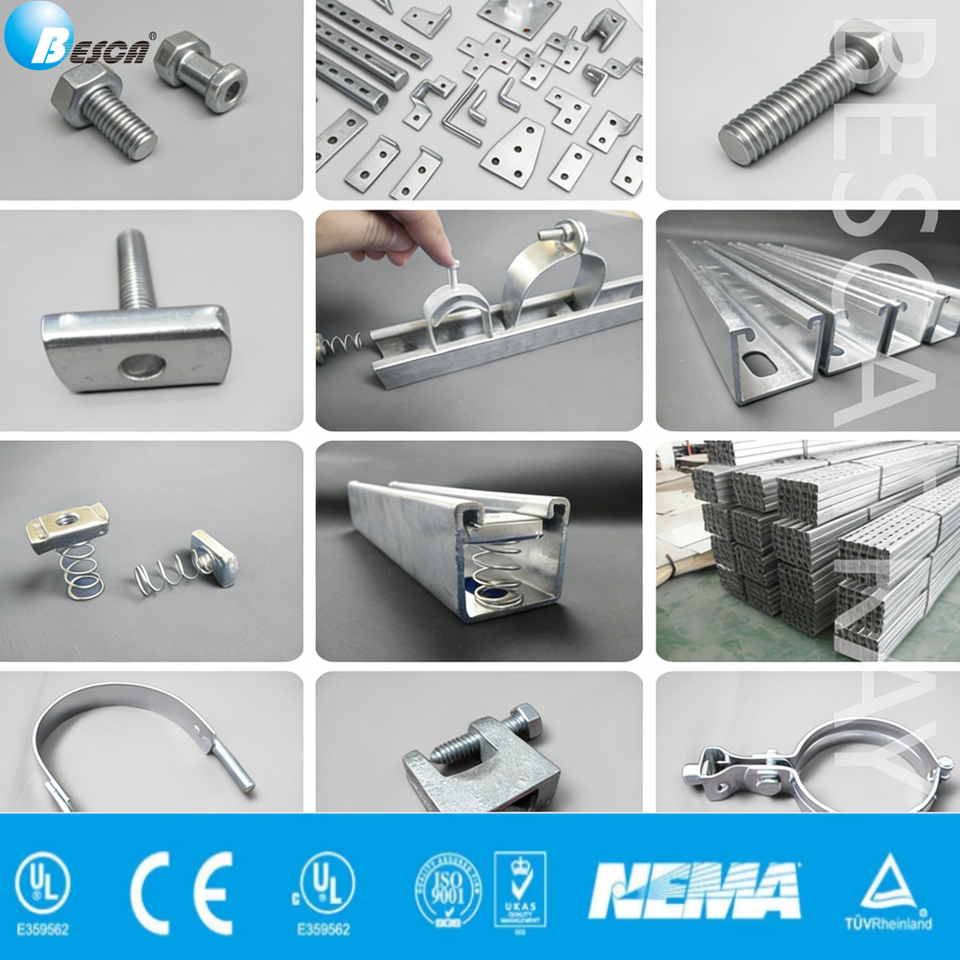 BESCA - Perfil de Canal Ranurado de 41x41 mm y Abrazaderas para Vigas de Alta Resistencia - Acero Galvanizado en Caliente, Sistema de Soporte con Certificación UL/CE/NEMA