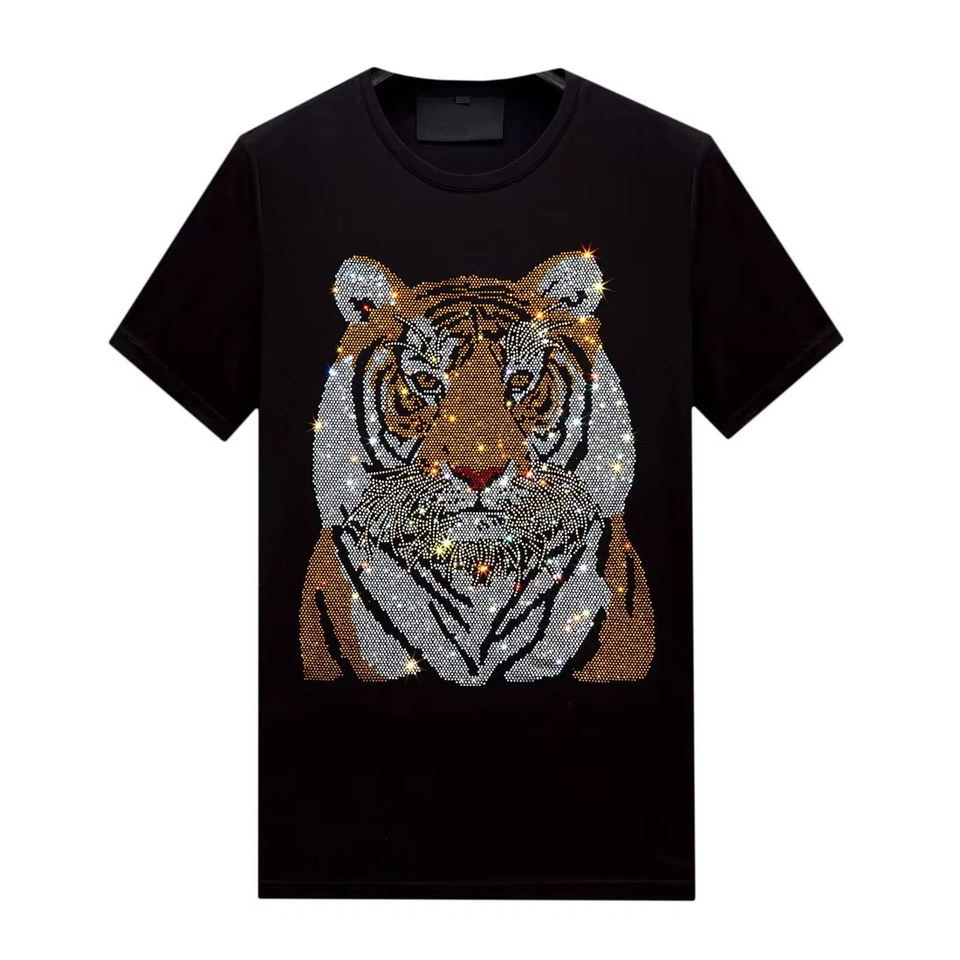 Camiseta Personalizada para Hombre con Pedrería, 100% Algodón Grueso, Camisetas de Moda para Hombre con Pedrería