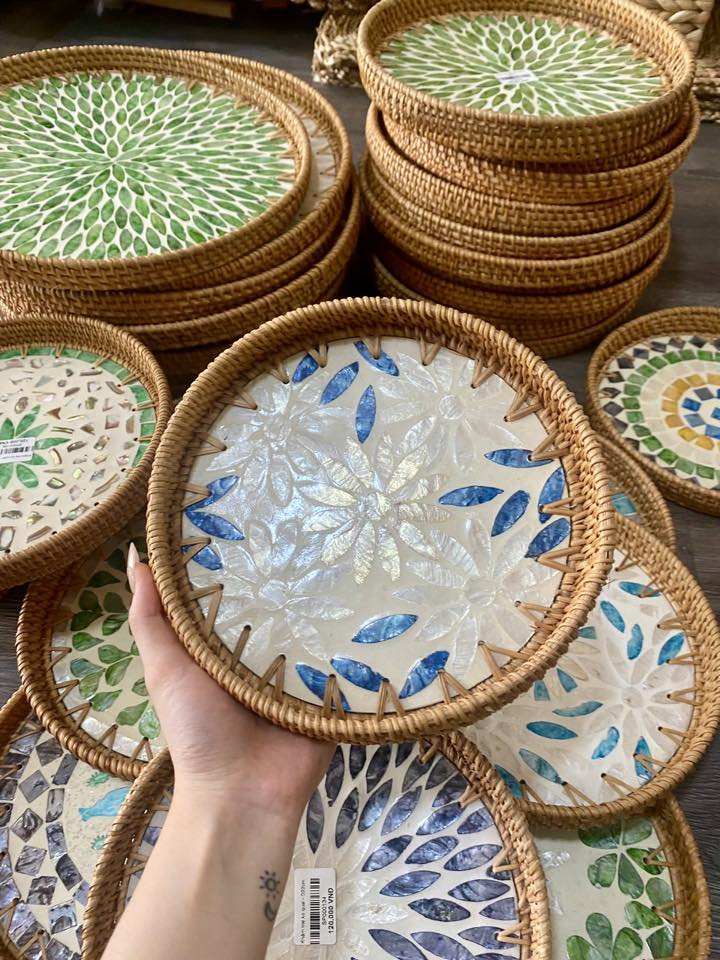 Bandeja de mosaico de ratán