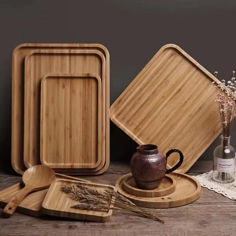 Bandeja de té rectangular de madera de Acacia de la mejor calidad, plato de mesa para servir aperitivos, plato de almacenamiento de alimentos para Hotel, bandeja para servir en el hogar