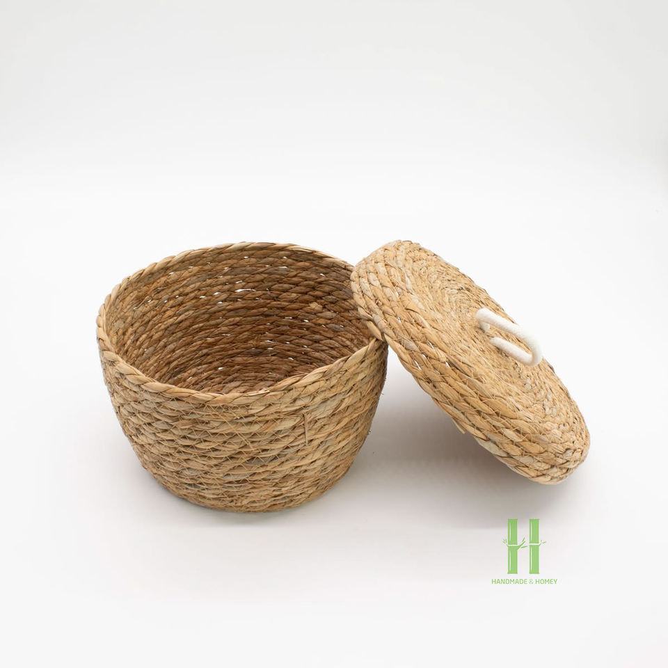Cesta de Mimbre Natural Tejida a Mano, Cesta de Almacenamiento con Asa, Ecológica, HNH CRAFT, Decoración Moderna Multiusos para el Hogar, Vietnam