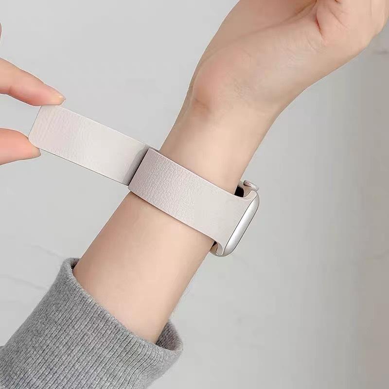 MÁS VENDIDO Correa Magnética de Silicona con Patrón de Lichi para TODAS las Series de Apple Watch Ultra/SE/S10, 10 Colores, Tamaños de 20mm a 49mm