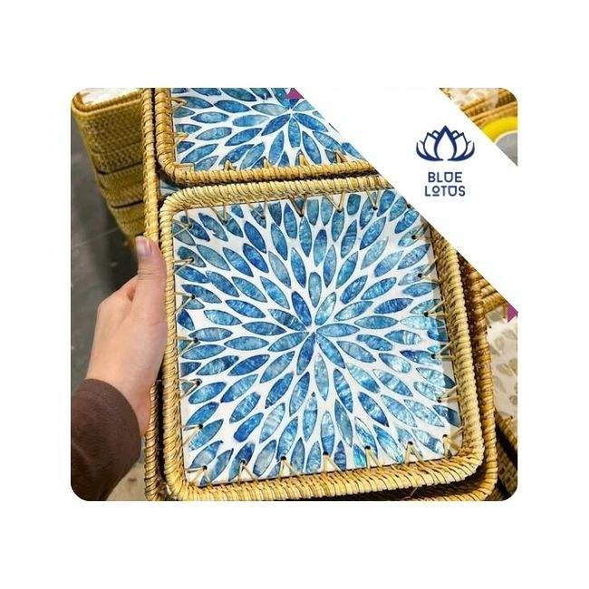 Bandeja de Ratán con Incrustaciones de Perlas, Ideal para Servir Alimentos y Bebidas y Decorar Mesas, para Exportación a Vietnam