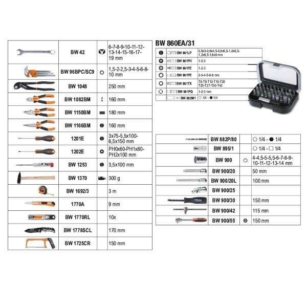 Caja de juego de herramientas BETA de 100 piezas con herramientas de mantenimiento variadas y bandejas de EVA blandas