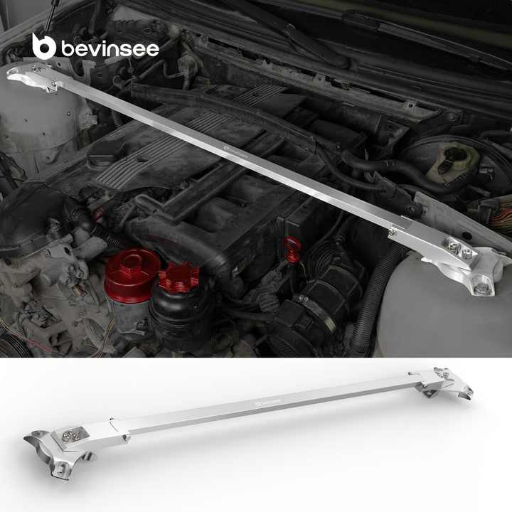 BEVINSEE E46 Front Upper Strut Tower Support Bar Brace Kit Aluminio para BMW 3 Series 325i 328i 330i M3 2002-2004 2005 2006