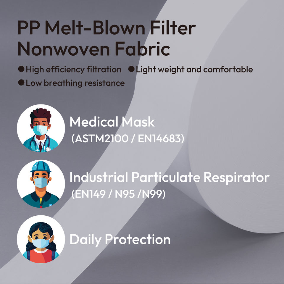 Rollo de tela de polipropileno soplado en fusión estándar BFE99 N95 para aplicaciones de mascarillas y filtros industriales