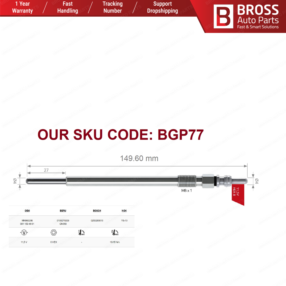 BGP77-bujía incandescente para calentador de coche, piezas de automóvil, 11,5 voltios, A0011594601, para Mit.su.bis.hi Colt 1,5 DI S.ma.rt 1,5 CDI Bross, 1 unidad