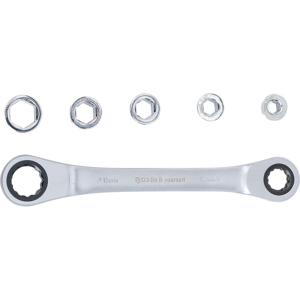 BGS Do It Yourself Llave de trinquete de doble extremo con juego de adaptadores 8 - 19 mm 6 piezas.