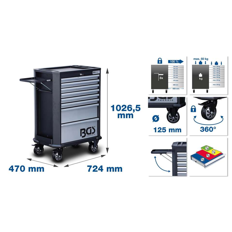 Carro de taller BGS 8 cajones con 296 herramientas