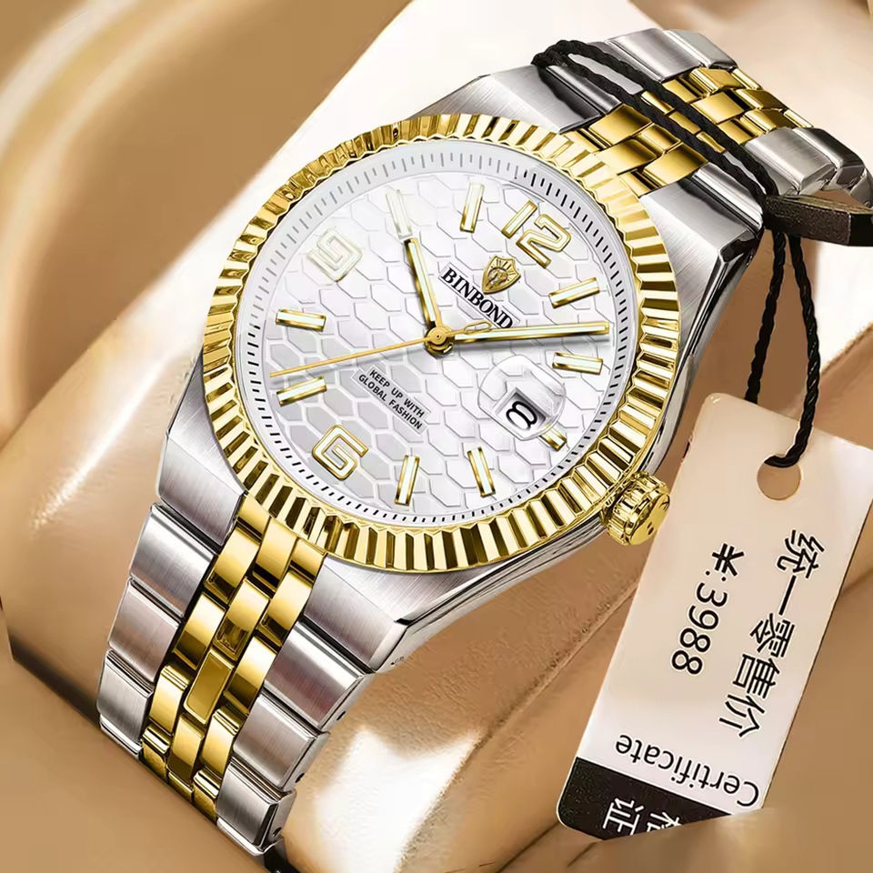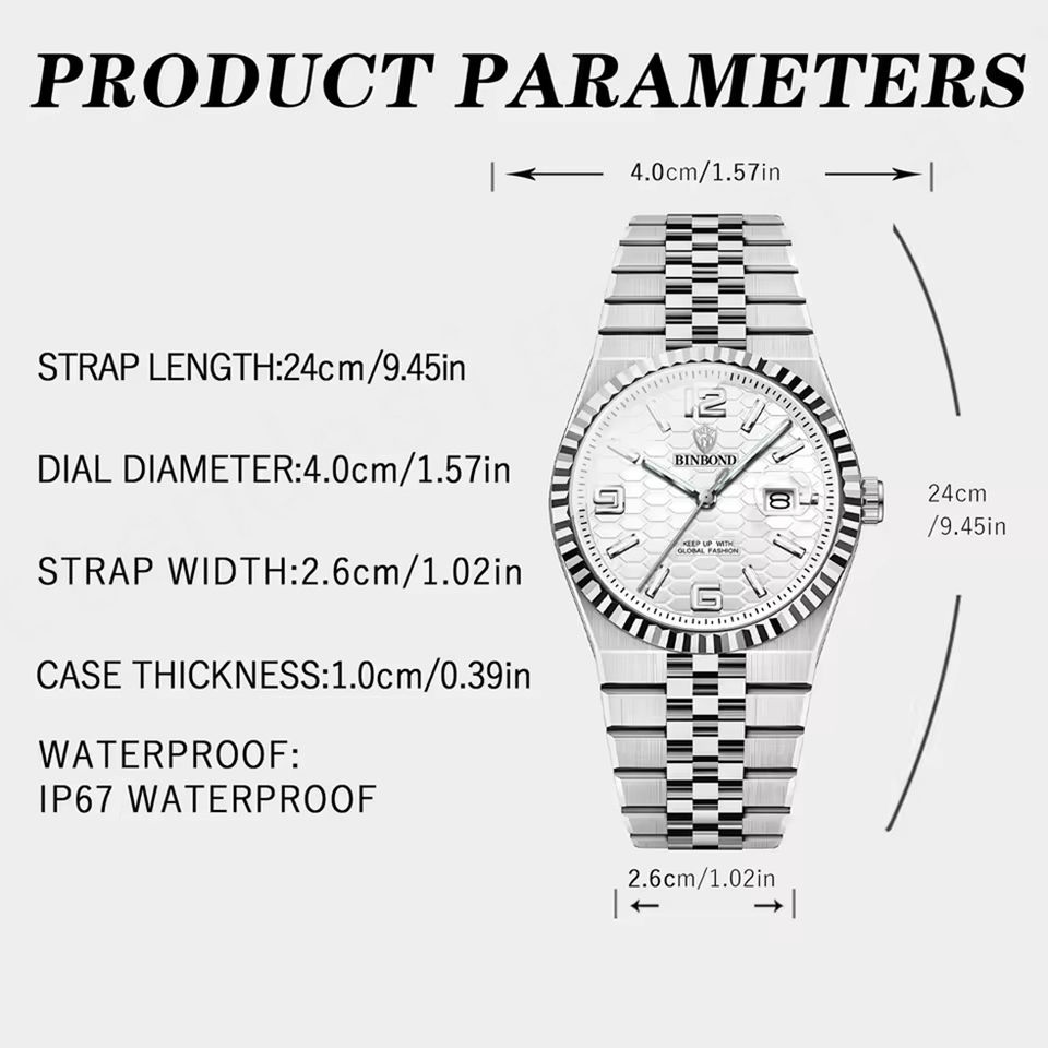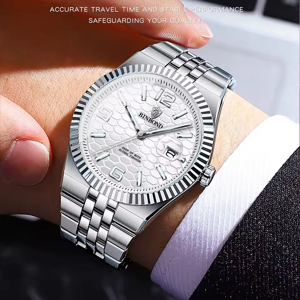 BINBOND 2025 Reloj de cuarzo de lujo para hombre Reloj de pulsera de acero inoxidable resistente al agua 30ATM con caja de aleación de 10mm Pantalla de fecha deportiva
