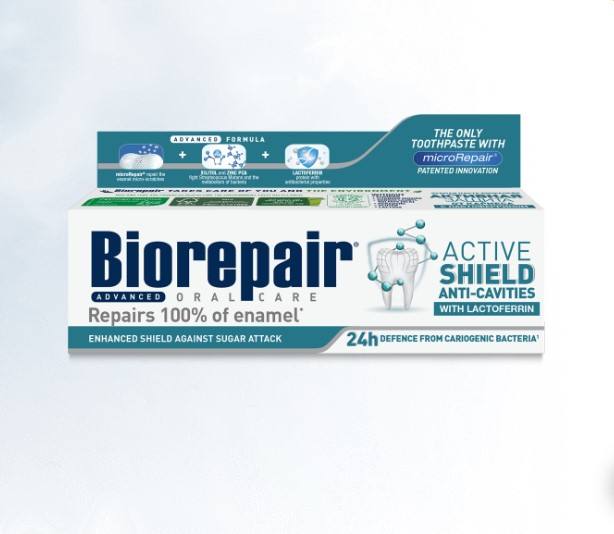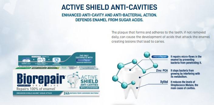 BIOREPARACION PASTA DENTAL AVANZADA ACTIVO SHIELD ANTI CAVIDAD ESMALTE PROTECCION 75 ML SIN FLUORURO