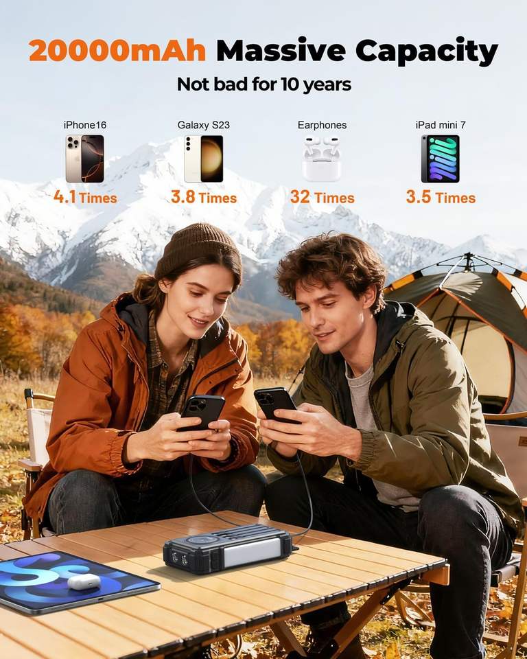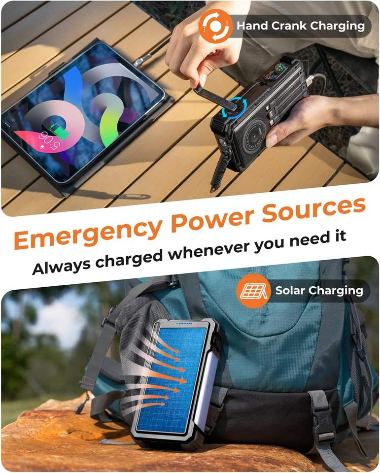 Cargador Portátil BLAVOR B007 con Manivela, 4 Cables, 20000mAh, Carga Rápida Inalámbrica de 20W, USB Tipo A y C, Linterna