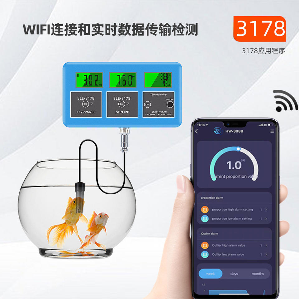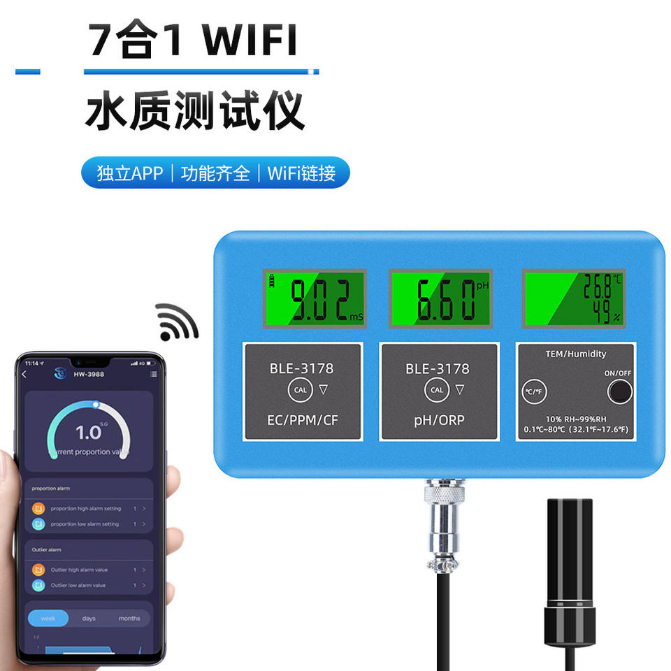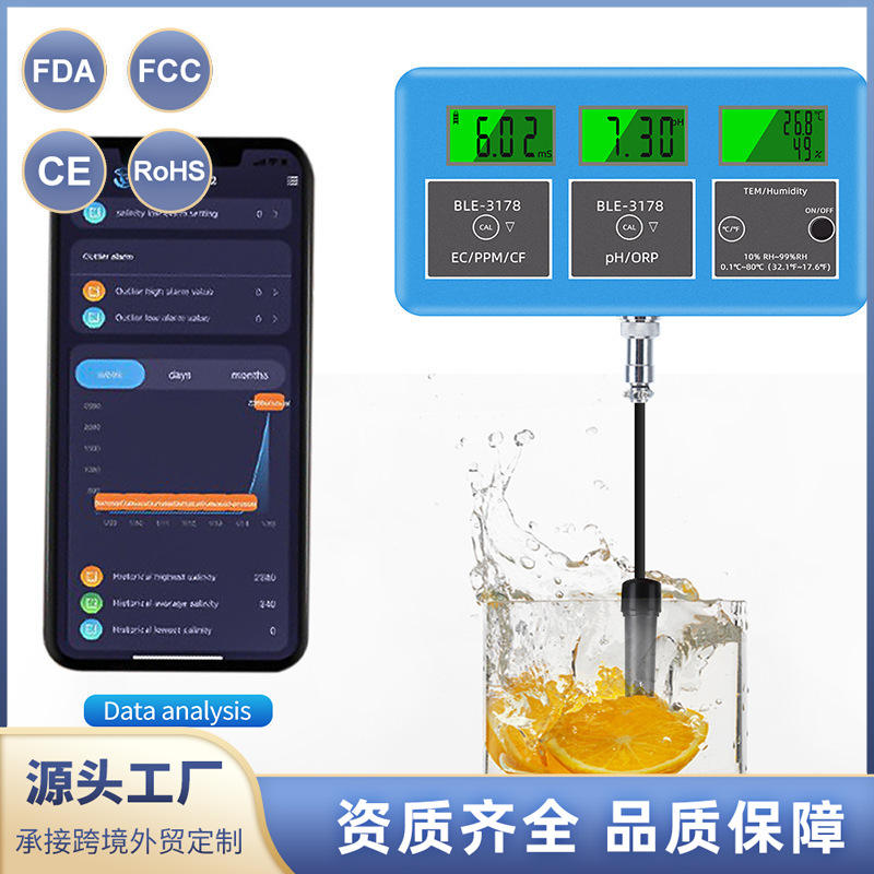 Analizador de Calidad del Agua BLE-3178, Medidor en Línea de EC, PPM, CF, pH, ORP, Temperatura y Humedad para Piscinas, Laboratorios y Acuicultura