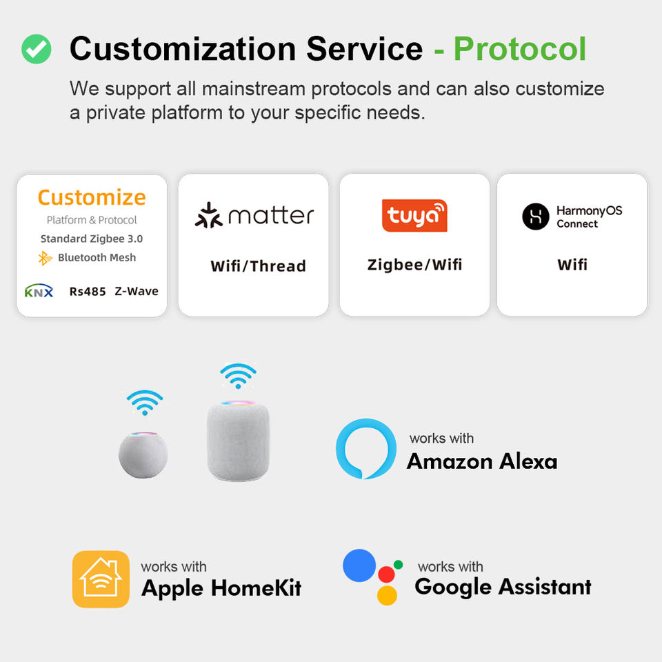 Protocolos personalizados:Tuya, Matter, Homekit
