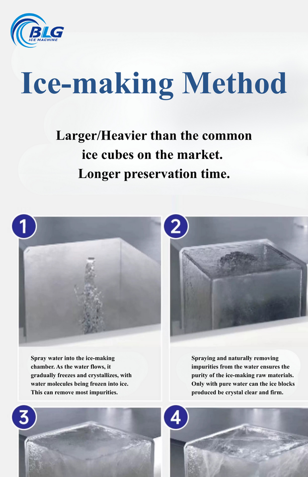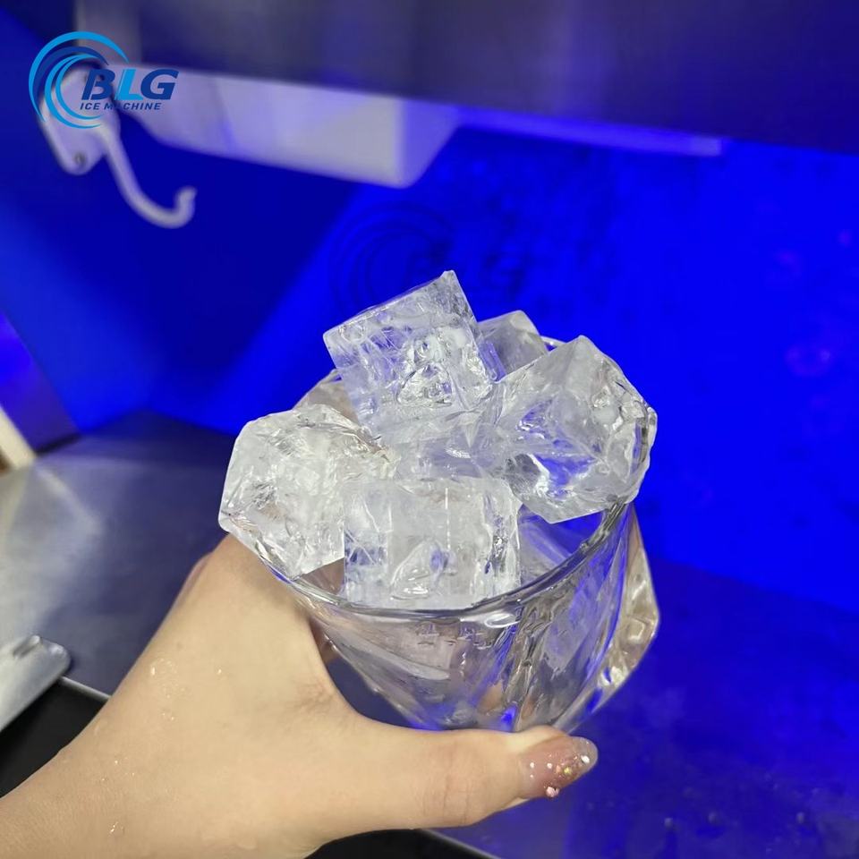 Máquina de Hielo de Cubos Completos Sólidos BLG, Hielo en Cubos Grandes para Whisky, Fábrica Líder en China para Bares y Hoteles, Hielo Transparente de 5x5 cm, Enfriamiento por Aire