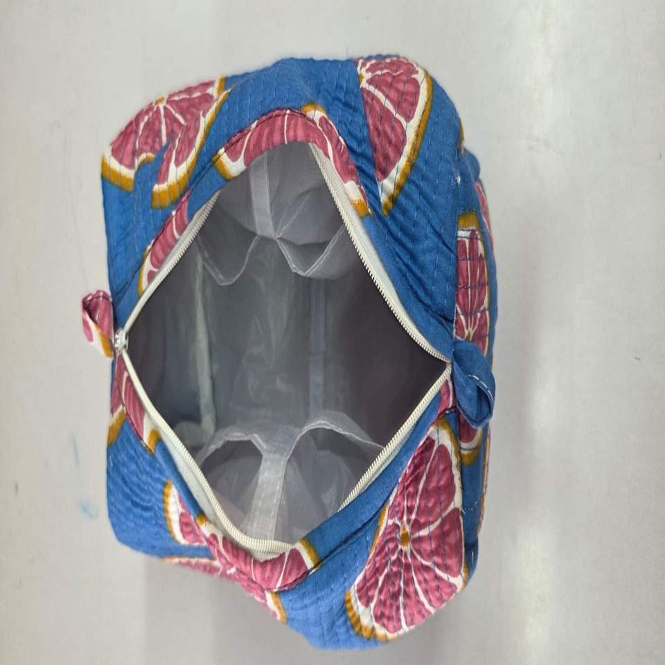 Juego de 3 Bolsas de Maquillaje y Aseo Plegables Multifuncionales de Algodón 100% Acolchado con Estampado Artesanal Estilo Tradicional, Ecológicas y Duraderas para Colgar en la Pared