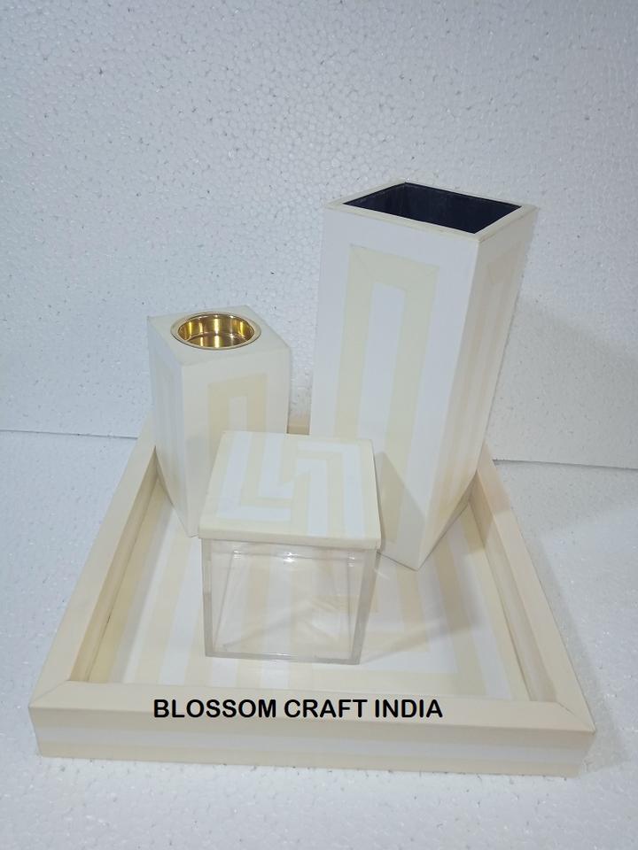 Juego de 4 Bandejas de Resina con Incrustaciones de Hueso, Hechas a Mano, de Primera Calidad, Elegantes, para Servir, Quemadores, Cajas, Jarrones