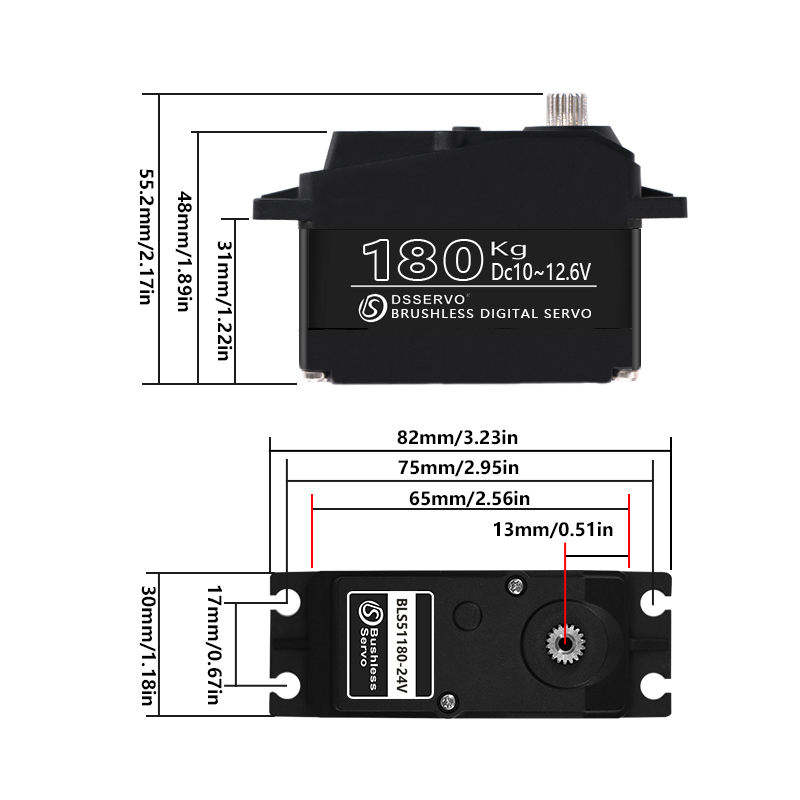 Motor Servo BLS51180 de 24V, Alto Torque de 180kg, Motor Digital Impermeable, Servo sin Escobillas