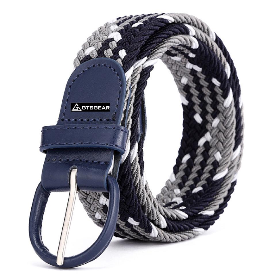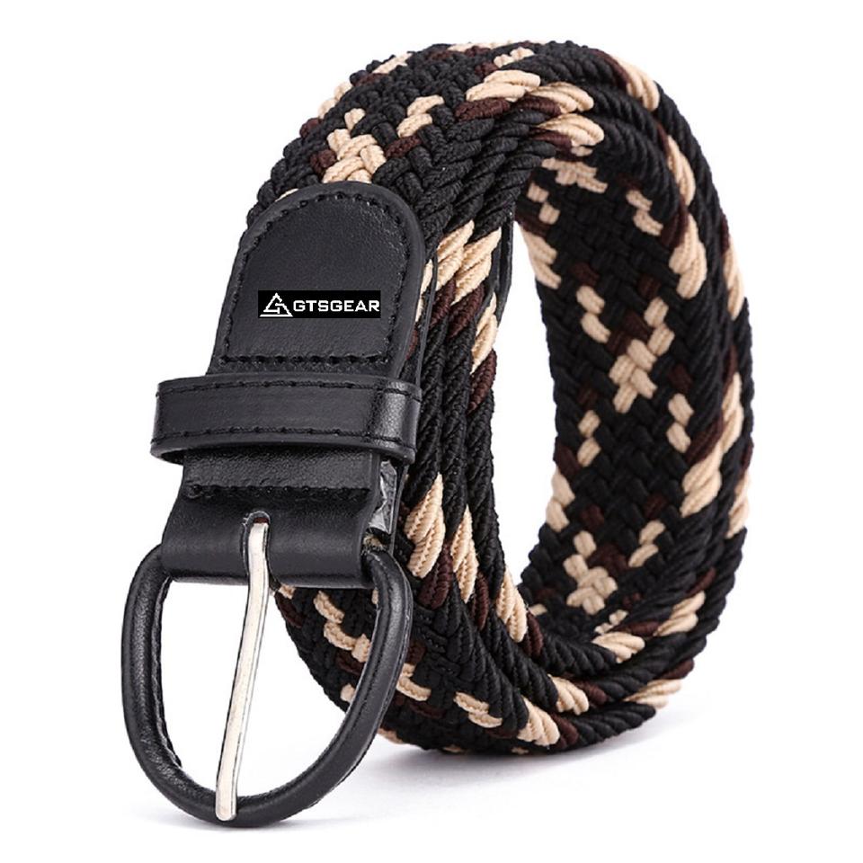 BLT40 A9 Cinturón de lona elástico tejido elástico formal para hombres y mujeres con diseño trenzado y hebilla de metal para un ajuste cómodo