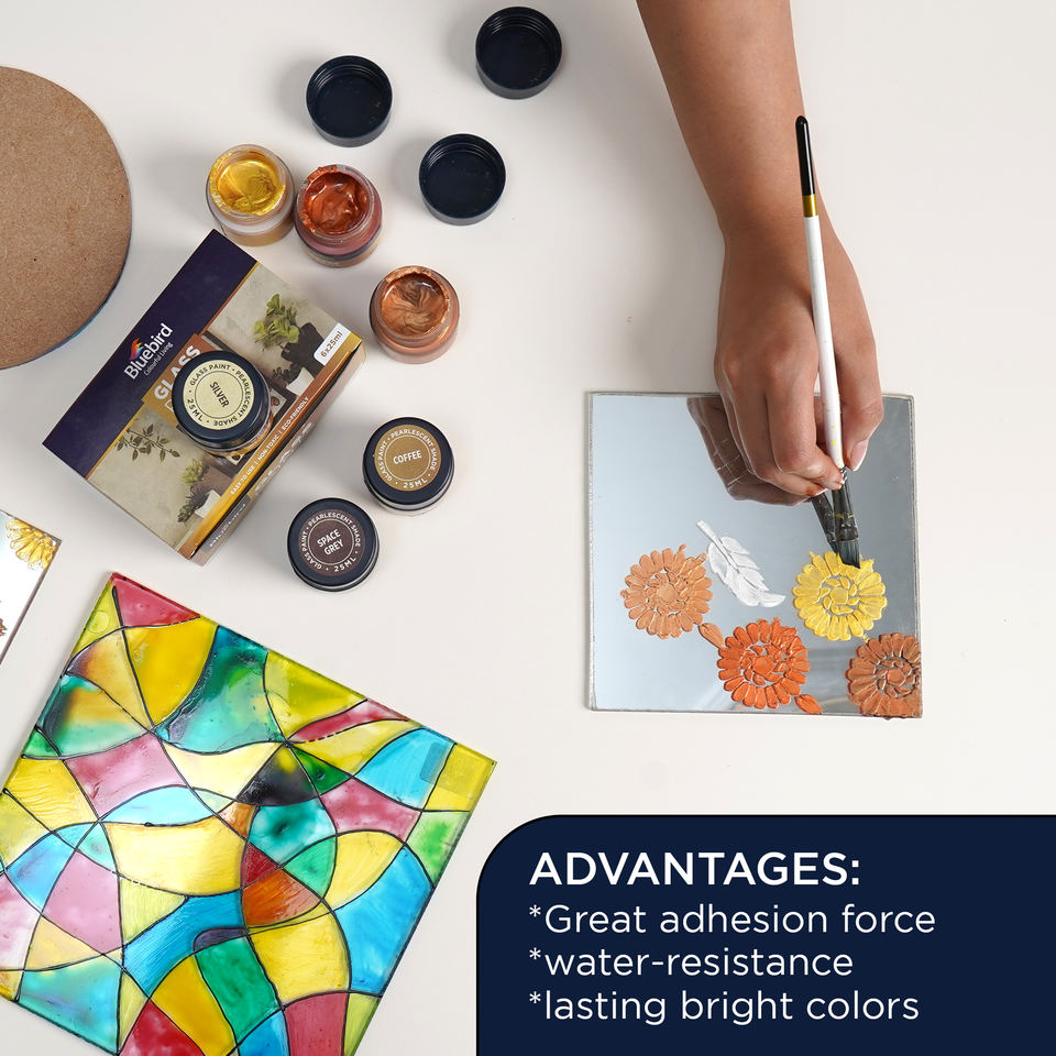 Nombre del Producto:Juego de 6 pinturas para vidrio nacaradas.