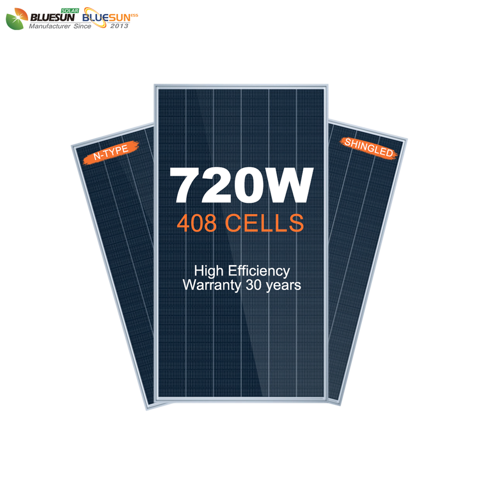 Panel solar BLUESUN de alta eficiencia de 750W, Panel bifacial de Tejas tipo N con certificado CE TUV para STOCK DE LA UE