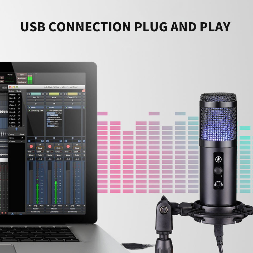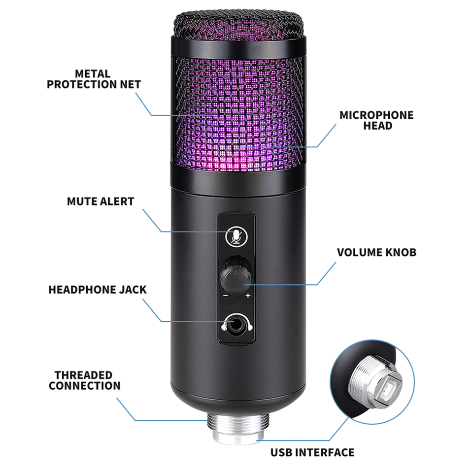 Función:Micrófono de condensador, Con luces LED, Con iluminación RGB