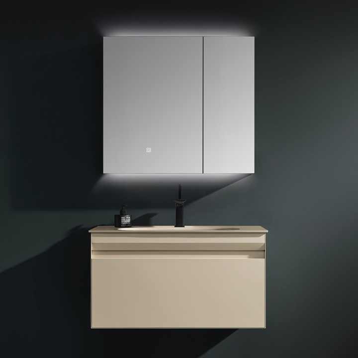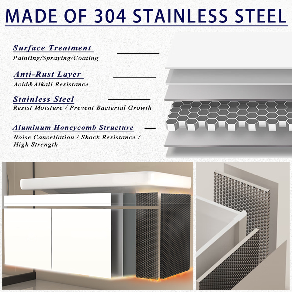 BNITM tocador de pared de acero inoxidable con espejo LED rectangular moderno de lujo con lavabo superior para gabinetes de baño de Hotel