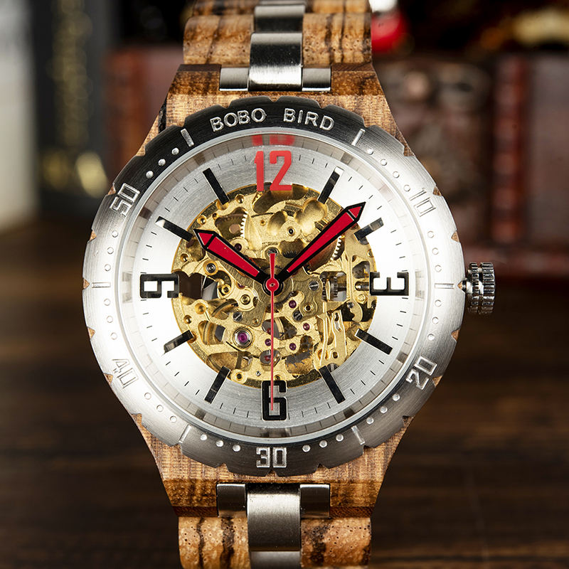 Reloj Automático BOBO BIRD de Madera con Logotipo Personalizado, Relojes Mecánicos de Pulsera para Hombre