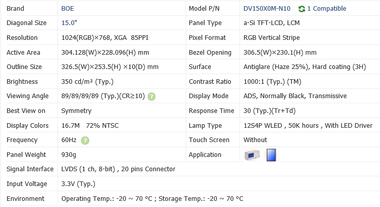 Interfaz de comunicación:Conector eDP (1 carril) , eDP1.2 , 30 pines